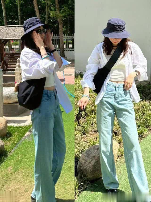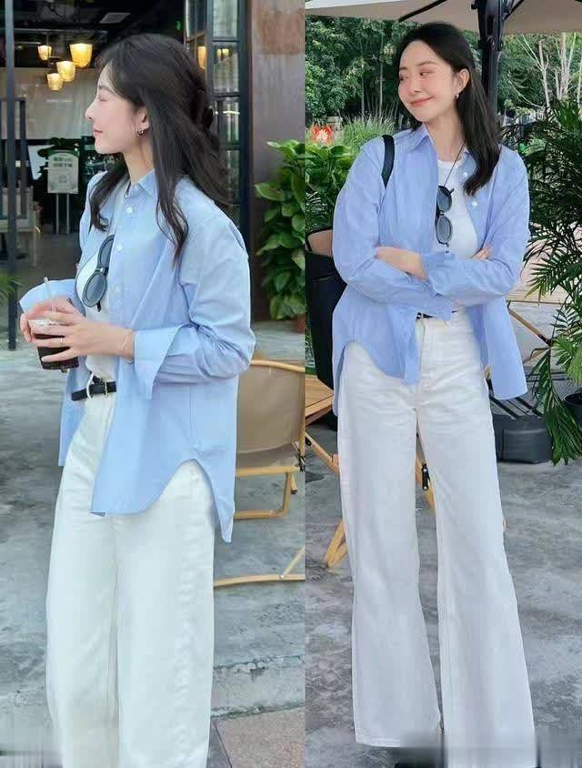 而除了扎衣摆以外,很多女士也喜欢直接把衬衫当作防晒衫应用,可以通过轻薄面料提升穿搭的舒适感。