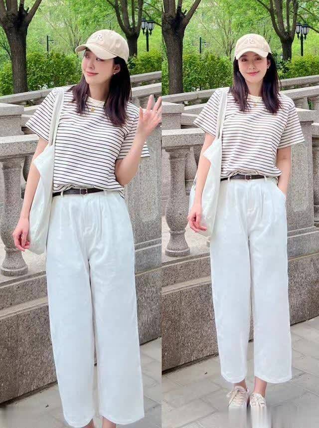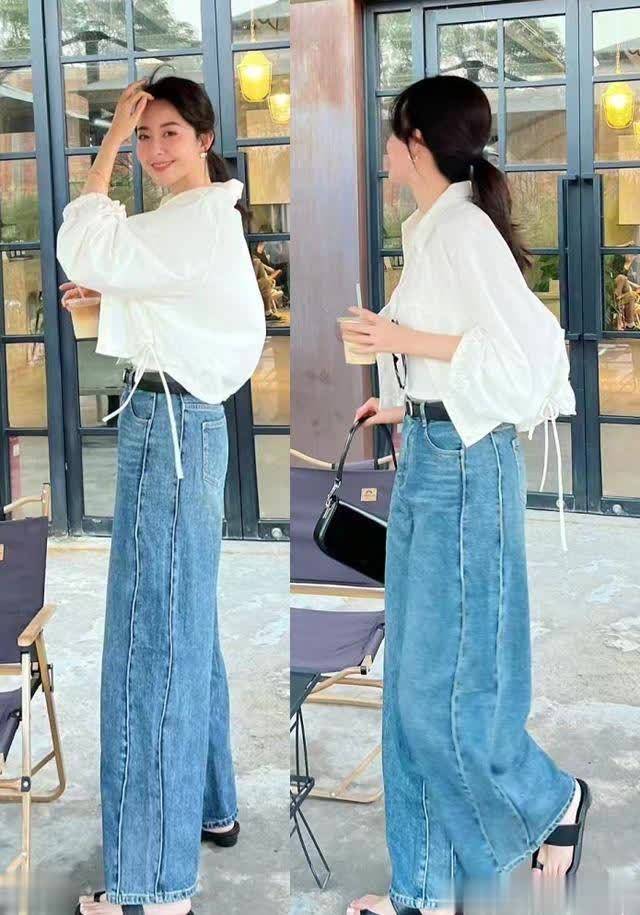 大多数人对于T恤的选择要求就比较简单,这也是白T为什么出镜率如此之高的原因,不挑年龄、不挑气质,与牛仔阔腿裤搭配一下,就显得清爽时髦。